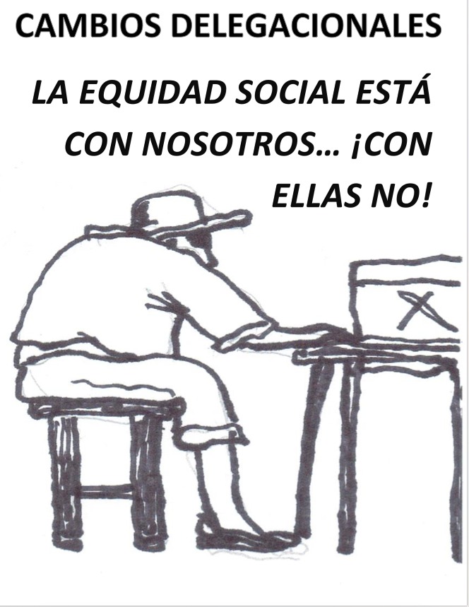 En las comunidades de nuestra querida huasteca y sierra, el cambio de delegados se celebra por “Usos y Costumbres” y éstos en automático en su mayoría eliminan la participación de la mujer en la elección de delegados. Es decir, en la concentración de ciudadanos en las delegaciones, son ellos, sin ellas, en las que se participa y la mujer en la mayoría de las localidades tiene prohibido ir a reunión de ellos.