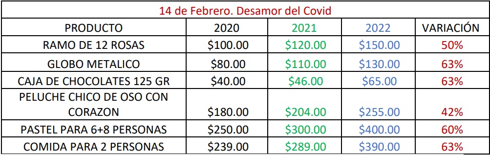 Ciudad de México. – La Alianza Nacional de Pequeños Comerciantes (ANPEC), como es costumbre, presenta la variación de precios que ha habido a lo largo de la pandemia en los regalitos más populares de esta celebración, resultando un incremento de precios promedio de un 60%.