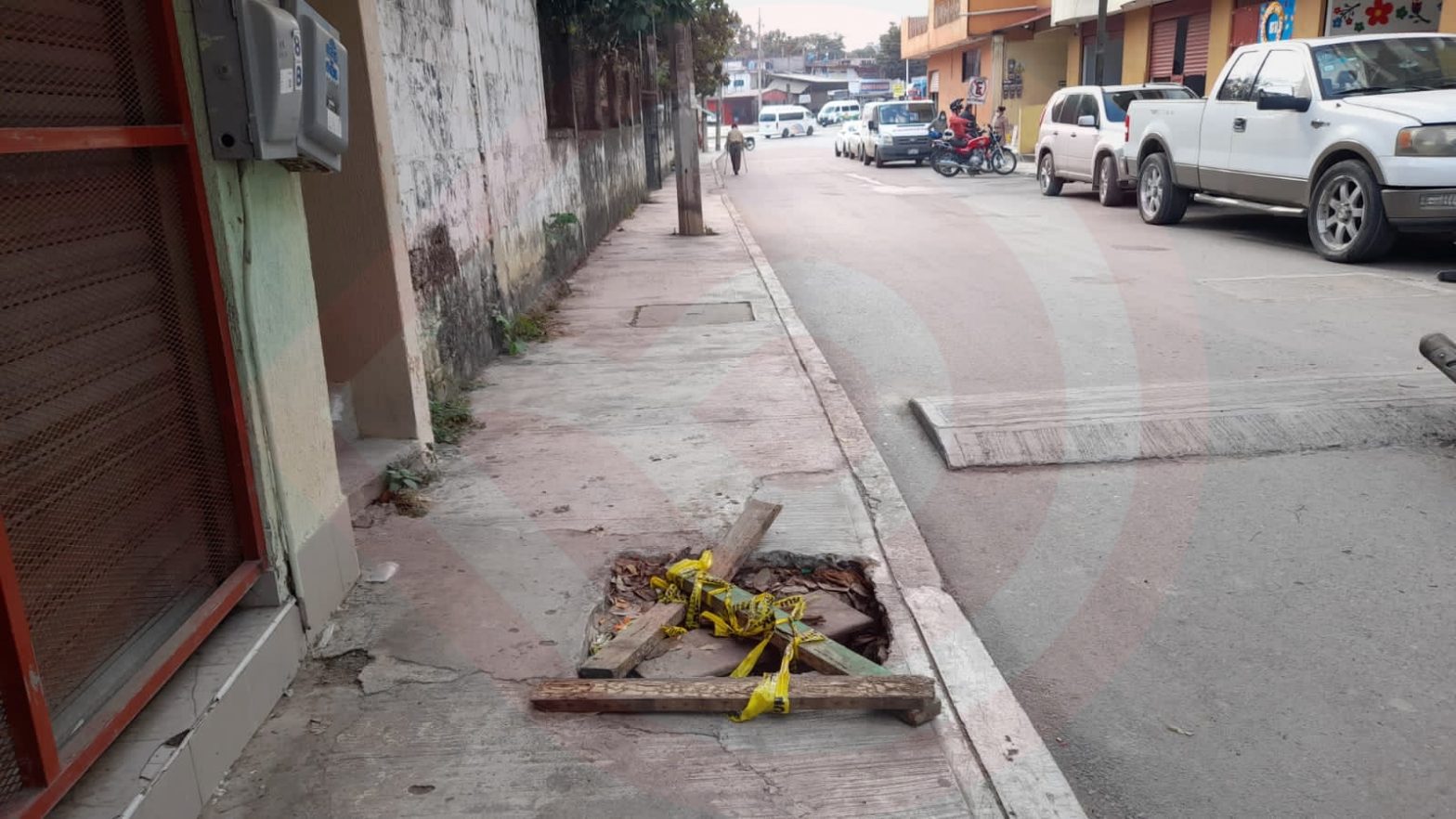 Registro sin tapadera riesgo para transeúntes en calle La Lomita
