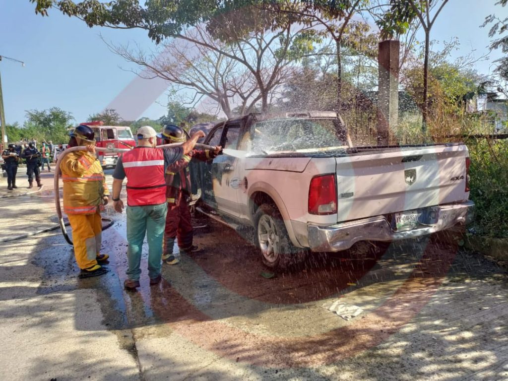 Al arribar al sitio se localizó una camioneta color blanca con placas de circulación del Estado de Veracruz, la cual ya había sido consumida en la parte frontal, por lo que de inmediato procedieron a sofocar el fuego con el apoyo del camión cisterna, así mismo, se presume que pudo tratarse de algún corto circuito en el área del motor, de igual manera, la unidad, de acuerdo a versión de habitantes del lugar, se encontraba abandonada desde hace varios días, por lo que posteriormente fue remolcada por una grúa al corralón, mientras que las autoridades serán quienes realicen las investigaciones correspondientes para localizar al propietario.