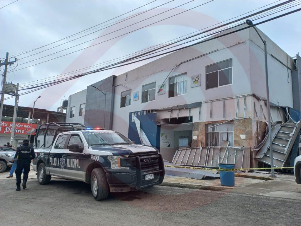 Huejutla, Hgo. – Movilización de elementos de Seguridad Pública Municipal y Protección Civil, se suscitó tras haberse caído la fachada del Centro de Salud, donde por fortuna no hubo personas lesionadas.