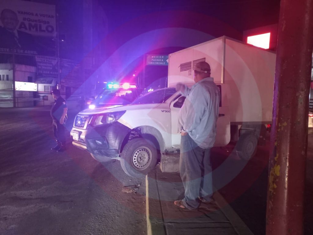 Huejutla, Hgo.- Movilización de la Policía Municipal se llevó a cabo, debido a que una persona del sexo masculino, quien viajaba en una camioneta, se impactó contra el camellón quedando por encima del mismo.