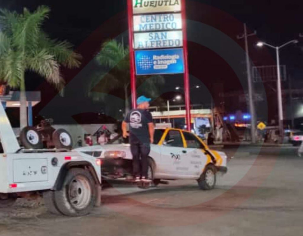 Huejutla, Hgo.- Un vehículo del servicio público en modalidad de taxi fue remolcado, luego de que el conductor al circular bajo el efecto del alcohol terminara subiéndose al camellón.