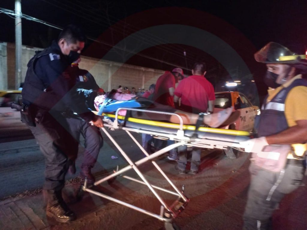 Los cuerpos de emergencia al arribar al sitio se percataron que se trataba de un vehículo del transporte público en modalidad de taxi marcado con el número económico 0263 el cual se encontraba arriba del camellón, donde el conductor y su copiloto se encontraban heridos, asimismo, en la unidad viajaba un menor que por fortuna resultó ileso, de igual manera, se localizó un automóvil Nissan Tsuru que de la misma forma contaba con cuantiosos daños materiales, además de haber resultado heridos dos tripulantes, siendo trasladadas las cuatro personas a un nosocomio por Bomberos y Cruz Roja.