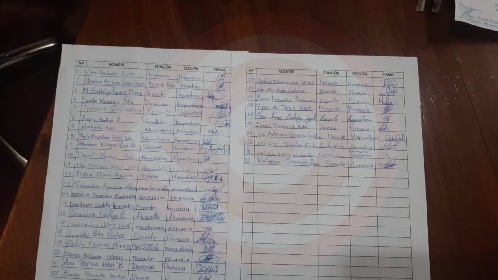 Aceptan los firmantes en el comunicado “hemos recibido los pagos totales correspondientes a nuestras quincenas” enumeran pago de aguinaldo, recalcaron que la convicción firme, han firmado el contrato laboral del presente ciclo escolar sin presión alguna de la Dirección General.