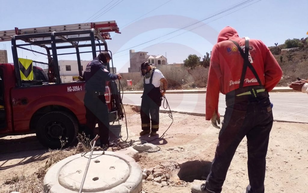 Pachuca de Soto, Hgo. – Como parte de las acciones de auxilio y salvamento que realiza el H. Cuerpo de Bomberos de la Secretaría de Seguridad Pública de Hidalgo, fue rescatado un perro que cayó al sistema de drenaje en la colonia La Palma, municipio de Pachuca.