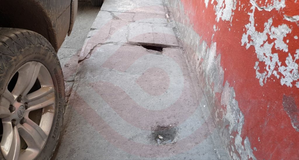 Huejutla, Hgo. – Habitantes de la población, refirieron que, por la ausencia de puestos comerciales, que el pasado miércoles se ubicaron en tramos de las calles Constitución y México, una de las banquetas de la arteria Eloxochitlán exhibió un marcado deterioro.