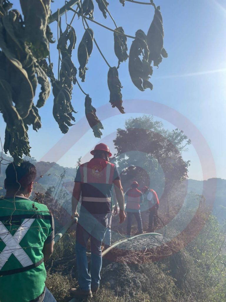 Los rescatistas, acudieron luego de recibir un reporte de una quema de pastizal que se había salido de control y motivo por el cual el fuego ya había consumido varios metros.