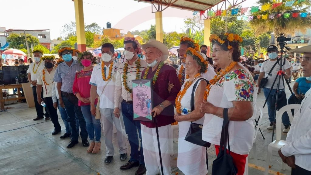 En el marco del evento, la delegación municipal de Chalahuiyapa que encabeza Fidencio Ramos Hernández, entregó un reconocimiento a Don Galindo, originario de la comunidad de Coyolapa, Atlapexco, y quien empezara hacer historia con su denotado falsete con el “Trío Perla Huasteca”.