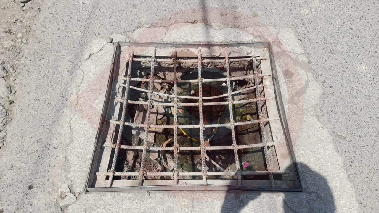 Solicitan recubrimiento de bache y del registro de drenaje en calle Rojo Gómez