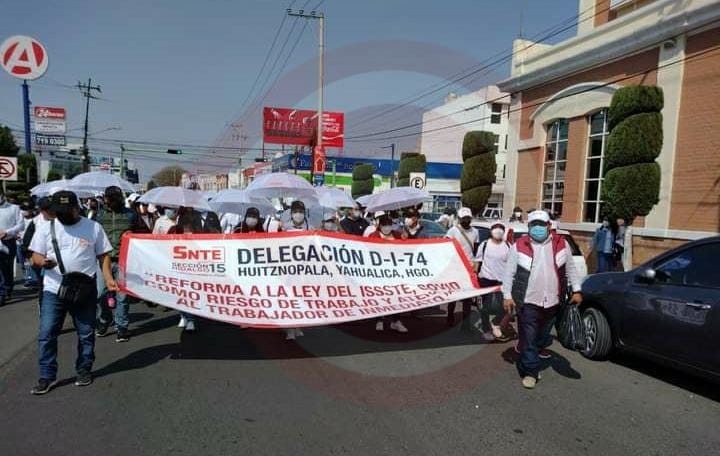 Yahualica, Hgo. – Maestros de las diversas escuelas del municipio participaron en la marcha por el día de Trabajo, el pasado 1 de mayo en la ciudad de Pachuca, como parte de las actividades que llevan para respaldar al SNTE en su pliego petitorio.