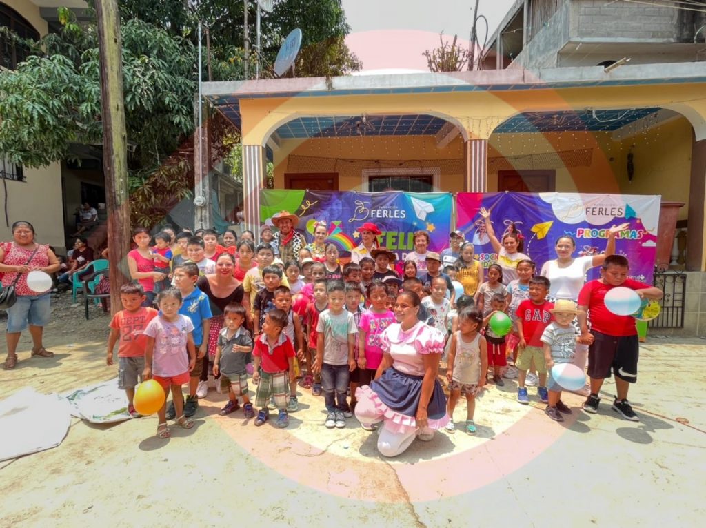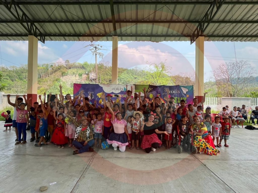 San Felipe Orizatlán, Hgo.- Entre sonrisas y mucha diversión, Fundación FERLES con su ruta del #DíaDelNiño llevó a diferentes comunidades el Show de Payasitas de la Fábrica de Sonrisas, así como la entrega de obsequios para los pequeños, asimismo,  durante los eventos acompañaron los integrantes del equipo de la fundación caracterizados de diferentes personajes de Disney.