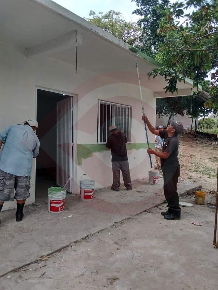 Por lo que se lleva la aplicación de pintura en fachadas de los centros educativos de niveles preescolar, primaria y telesecundarias; puentes peatonales, casas delegacionales y auditorios municipales en diversas localidades.