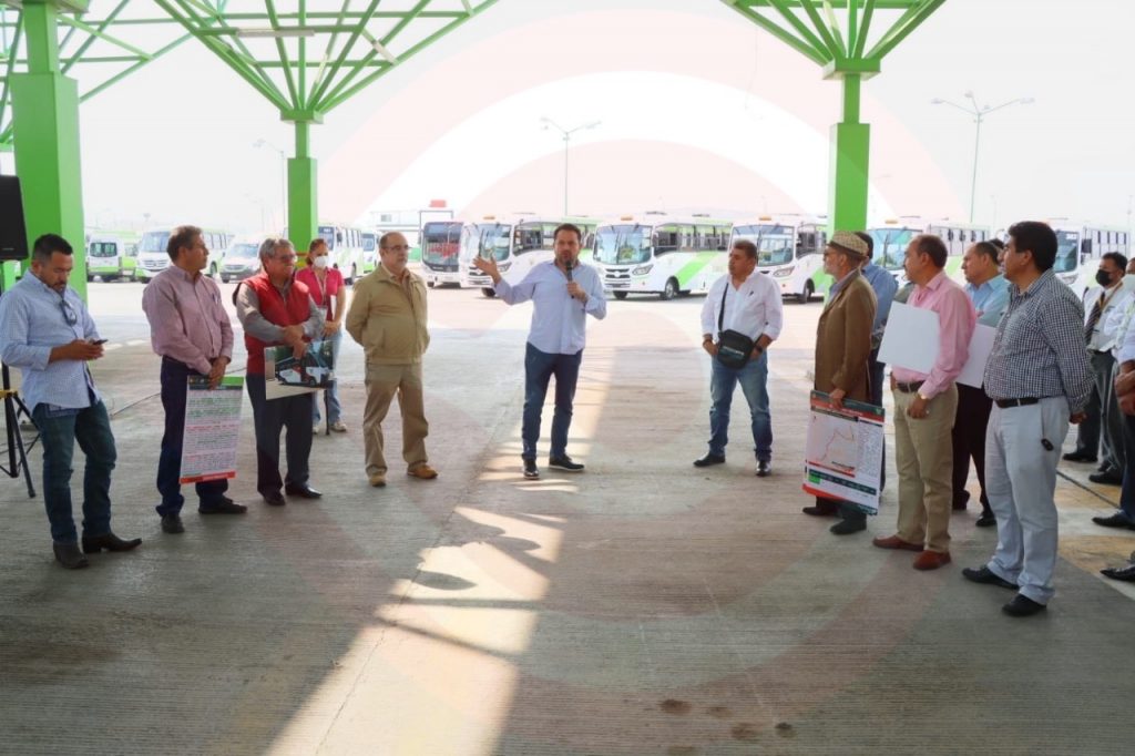 Pachuca, Hgo.- El titular de la Secretaría de Movilidad y Transporte (SEMOT) acompañado del director del Sistema Integrado de Transporte Masivo de Hidalgo (SITMAH), el dirigente del Sindicato de Trabajadores de la Confederación Revolucionaria de Obreros y Campesinos del Estado de Hidalgo (CROC) y el representante de la operadora temporal “Líneas Urbanas y Suburbanas de Pachuca S.A. de C. V.”, realizaron un recorrido en las instalaciones del Tuzobús en terminal patio Téllez para detectar las fortalezas y debilidades del sistema.