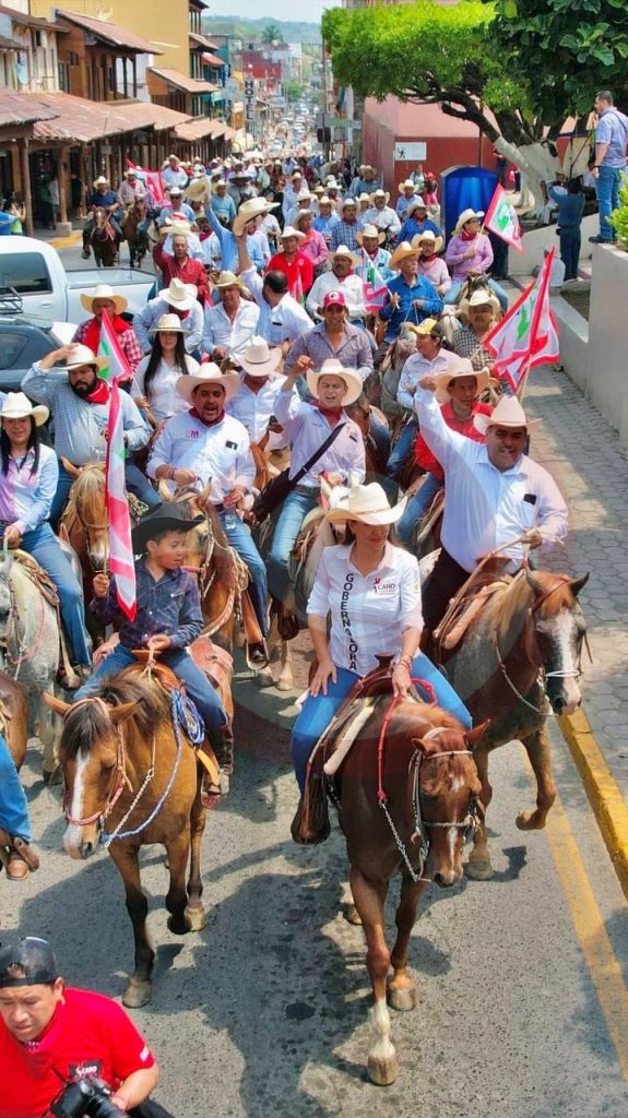 Huejutla, Hgo. – La mañana de este sábado, la candidata de la alianza Va por Hidalgo, Carolina Viggiano Austria, se sumó a la denominada cabalgata de la victoria por las calles de Huejutla, acompañada por más de 350 jinetes de diferentes organizaciones campesinas de municipios vecinos que simpatizan con el proyecto de la candidata serrana.