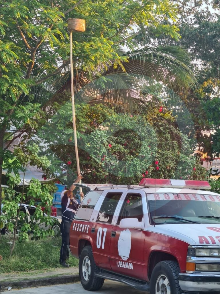 El panal fue localizado en un árbol de jobo a una altura de aproximadamente cinco metros de altura y como el enjambre se encontraba a un costado de la calle, representaba un peligro para las personas, ya que de repente se alborotan los insectos.