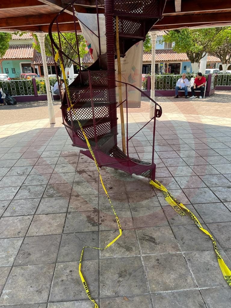La tarima del Kiosco se encuentra muy débil y para evitar algún incidente se colocaron las cintas de precaución, pero claramente se pudo observar que no han sido respetadas.