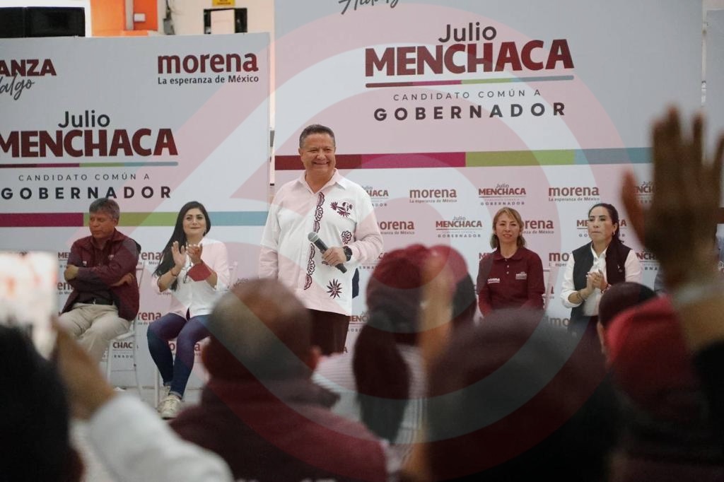 Pachuca, Hgo.- En un encuentro con integrantes de las estructuras territoriales y electorales de Morena realizado en Pachuca, el candidato común de “Juntos Hacemos Historia”, Julio Menchaca Salazar, anunció que de acuerdo con la última encuesta elaborada por el Comité Ejecutivo Nacional del partido guinda, la victoria en las urnas es irreversible, siendo el estado de Hidalgo la entidad que más diferencia de votos alcanzará de entre las seis que habrán de renovar el poder Ejecutivo local.