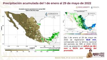 En tanto, del 1 de enero al mismo 29 de mayo, se ha registrado un déficit de lluvia de 25.3%, en comparación con la cifra nacional histórica de ese periodo.
