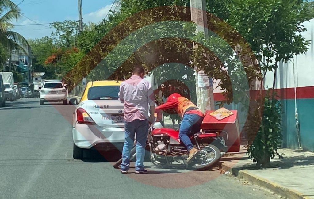 Los hechos ocurrieron durante el transcurso del martes sobre la calle Allende de la colonia Hidalgo, cuando el conductor de una motocicleta de la pizzería con razón social Pizza Mya terminó estrellándose contra la parte trasera de un vehículo del transporte público en modalidad de taxi, marcado con el número económico 074, debido a que el vehículo de dos ruedas presuntamente se dirigía a exceso de velocidad.
