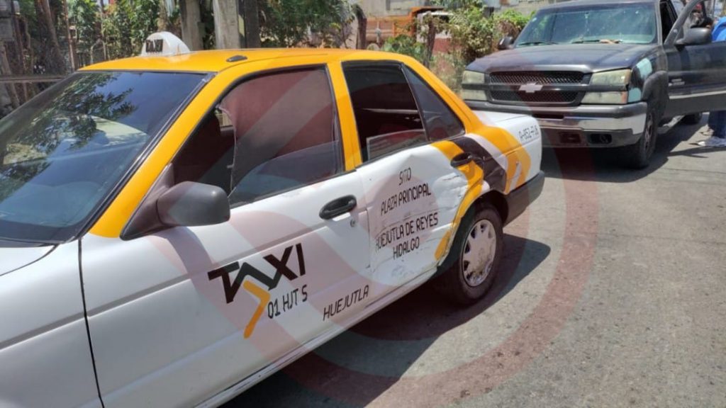 Huejutla, Hgo.- Un vehículo del transporte público en modalidad de taxi resultó con cuantiosos daños materiales al ser impactado lateralmente por una camioneta particular.