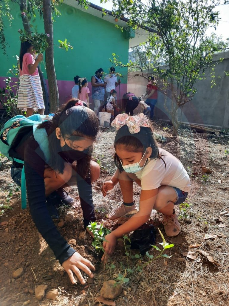 Las acciones se llevaron a cabo en el preescolar Yeyetsi de la citada localidad, en donde participaron padres de familia, niños, alumnos y vecinos; para ello realizaron la plantación de árboles frutales, ornamentales y efectuaron la recolección de residuos sólidos.