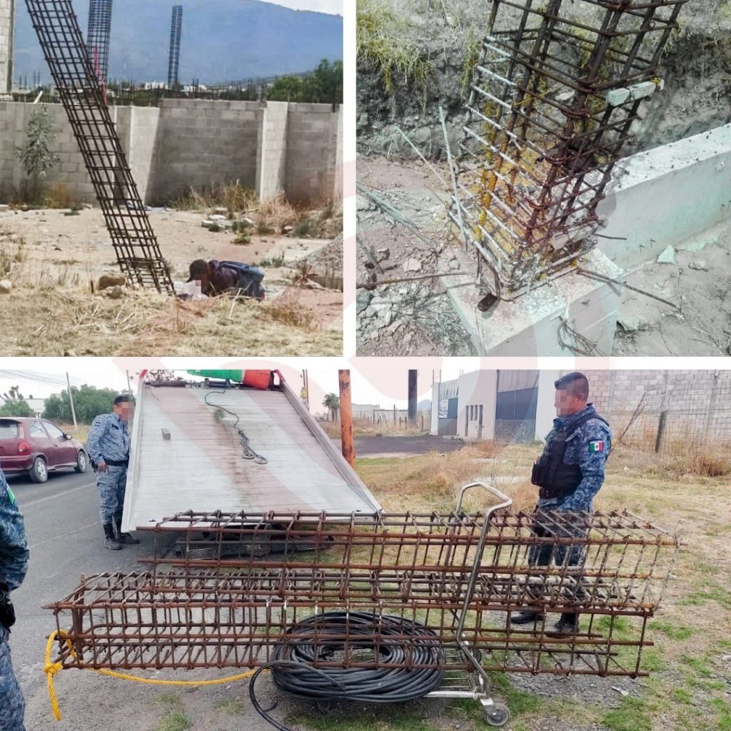 Mediante patrullajes de seguridad y vigilancia, policías de la Agencia de Seguridad Estatal detectaron a los individuos en una obra, a los que se les aseguró un carro de supermercado y a bordo de éste estructuras y material. Dentro de la propiedad fue hallado un hombre cortando con una segueta un castillo de metal.
