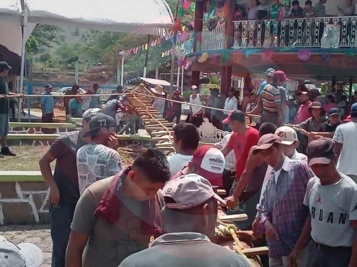 Con ritual colocaron un poste de voladores para fiestas en Mecatlán