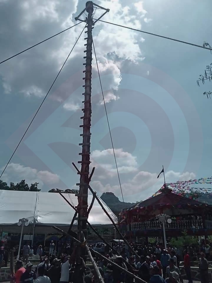 Fueron las autoridades delegaciones y habitantes en general quienes la tarde del sábado iniciaron con la excavación de un hueco de casi dos metros de profundidad, para después ofrecer una ofrenda a la madre tierra con veladoras, pollo, agua bendita y algún licor; con la ayuda de más 500 habitantes pudieron levantar el poste de madera de más de 30 metros de altura y pararlo para los voladores.