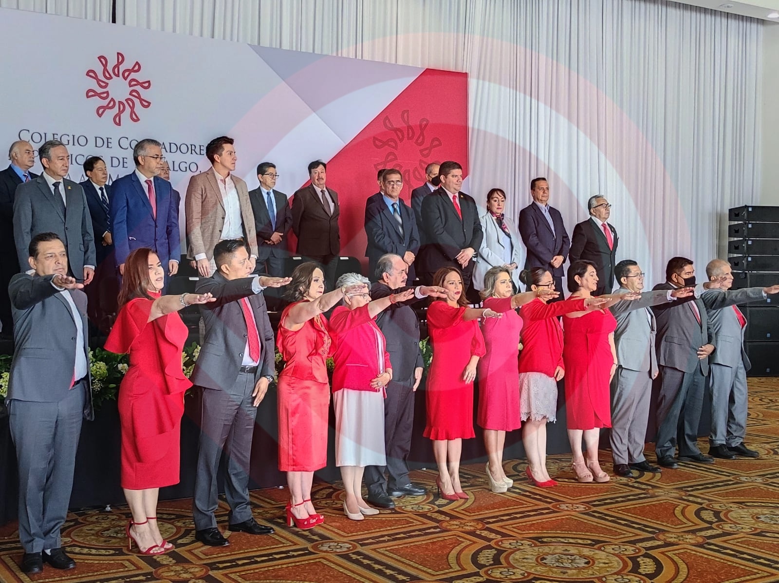 Acudieron a atestiguar el inicio de funciones del Consejo Directivo 2022-2023, el titular de la Secretaría de la Contraloría estatal, César Mora; la diputada local Citlali Jaramillo; el responsable de la Auditoría Superior del Estado de Hidalgo y miembro del Colegio, Armando Roldán, entre otras autoridades estatales y municipales, así como socios del Colegio.