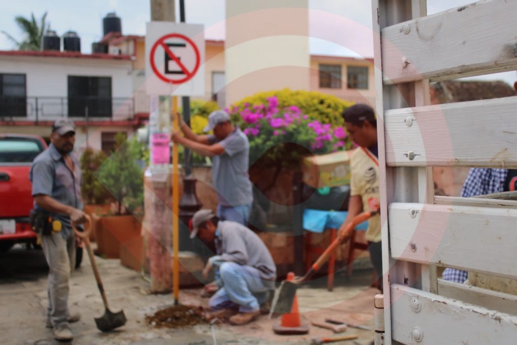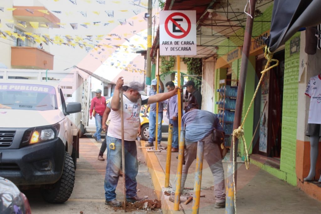 Desde temprana hora los elementos de policía y tránsito, con el apoyo de personal de Servicios Generales, instalaron los postes y señalética en sitios donde existe fluidez vehicular.