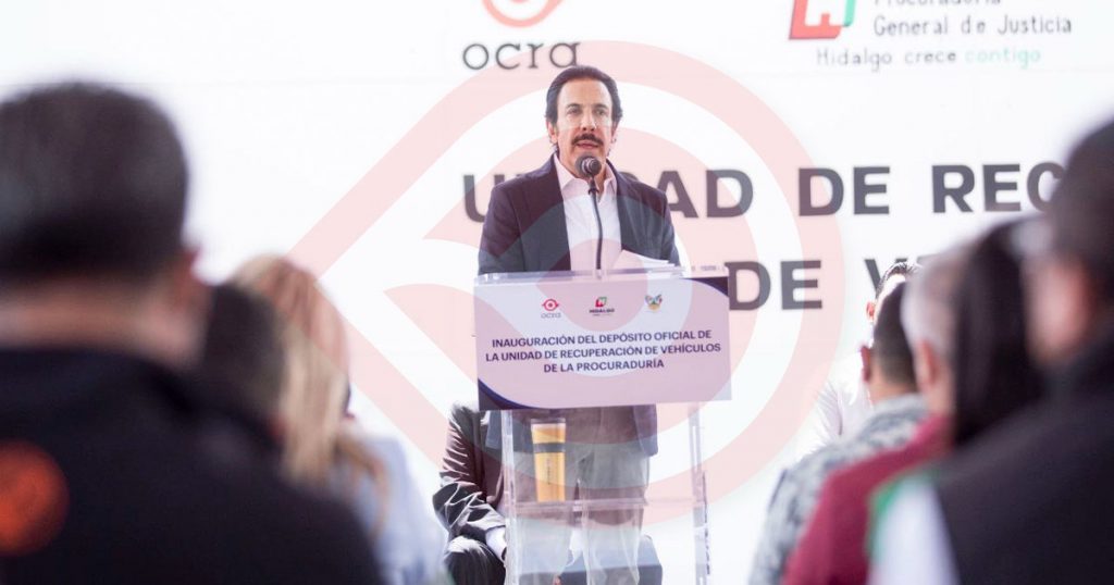 Después de 100 años del funcionamiento de la PGJEH se inaugura el primer depósito oficial de la Unidad de Recuperación de Vehículos. Habib Nicolás expuso que hace 26 años cuando el gobernador Omar Fayad era procurador, puso en funcionamiento la primera Unidad especializada para la recuperación de vehículos robados en la entidad, área “que surgió como respuesta a la imperiosa necesidad de contar con un espacio físico con los requerimientos necesarios y el personal capacitado para el resguardo de los vehículos robados” y que fueron recuperados.