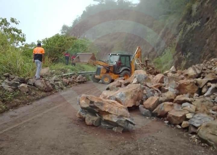 Yahualica, Hgo. – Un derrumbe que se registró por los intensos aguaceros en este municipio, bloqueo la vía estatal Mecatlán- Mesa Larga, afectando a cientos de pobladores, por lo que elementos de Protección civil (P.C.) con maquinaria están trabajando para retirar los escombros a fin de que haya acceso a las diversas comunidades de Yahualica y Calanali.