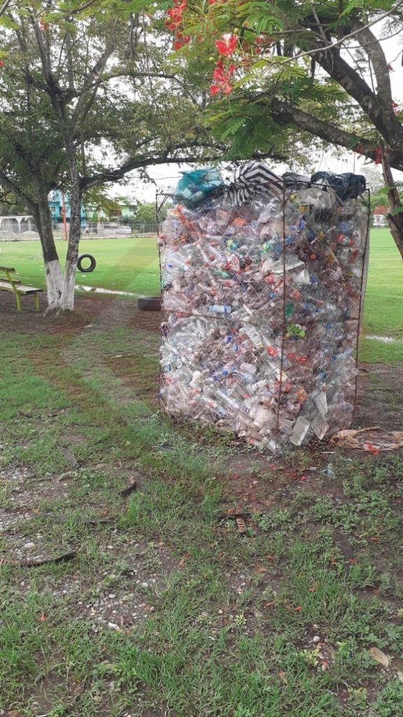 Huejutla, Hgo. – Una de las jaulas para almacenar botellas de Pet, ubicada en las canchas de los corrales blancos de esta ciudad, luce hasta el tope; la actividad deportiva se ha visto suspendida por espacio de dos semanas; por eso los desechos sólidos no han rebasado dichas jaulas.