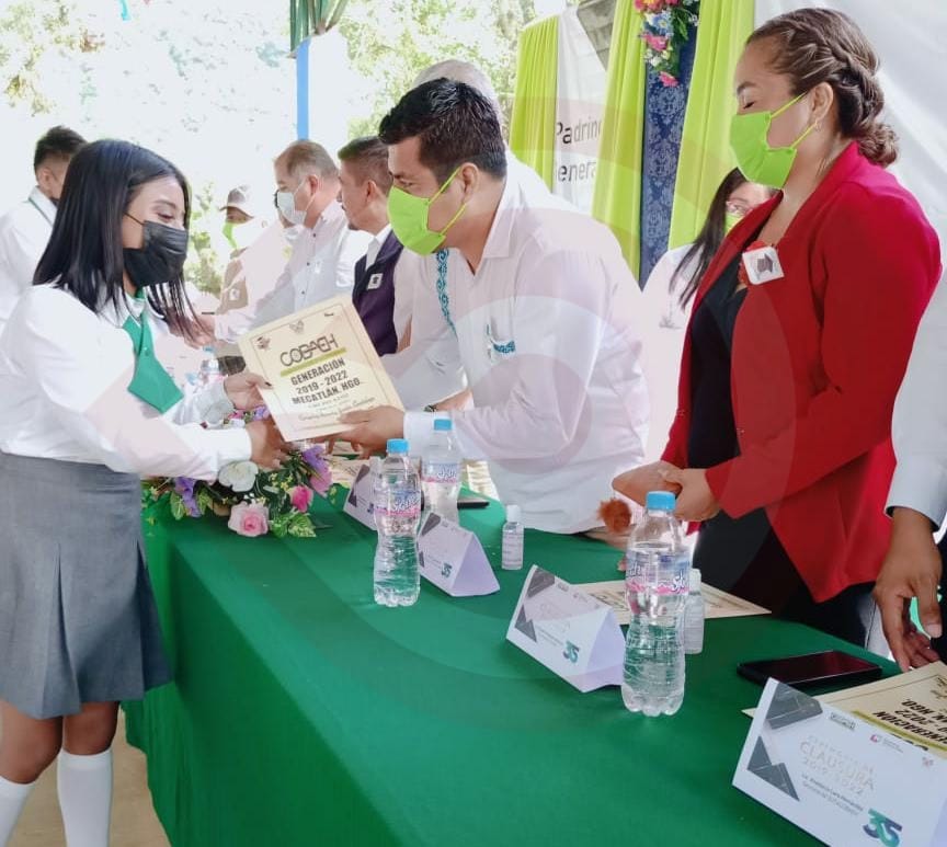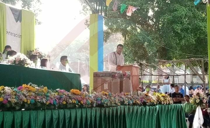 El evento se realizó en la galera pública de Mecatlán; en la mesa de honor acompañaron al edil, el coordinador de los COBAEH de la zona cinco Clemente Salazar Olivares, la presidenta del DIF Patricia Rodríguez Murillo y Marcelo Torres Tellez, nombre de esa generación.
