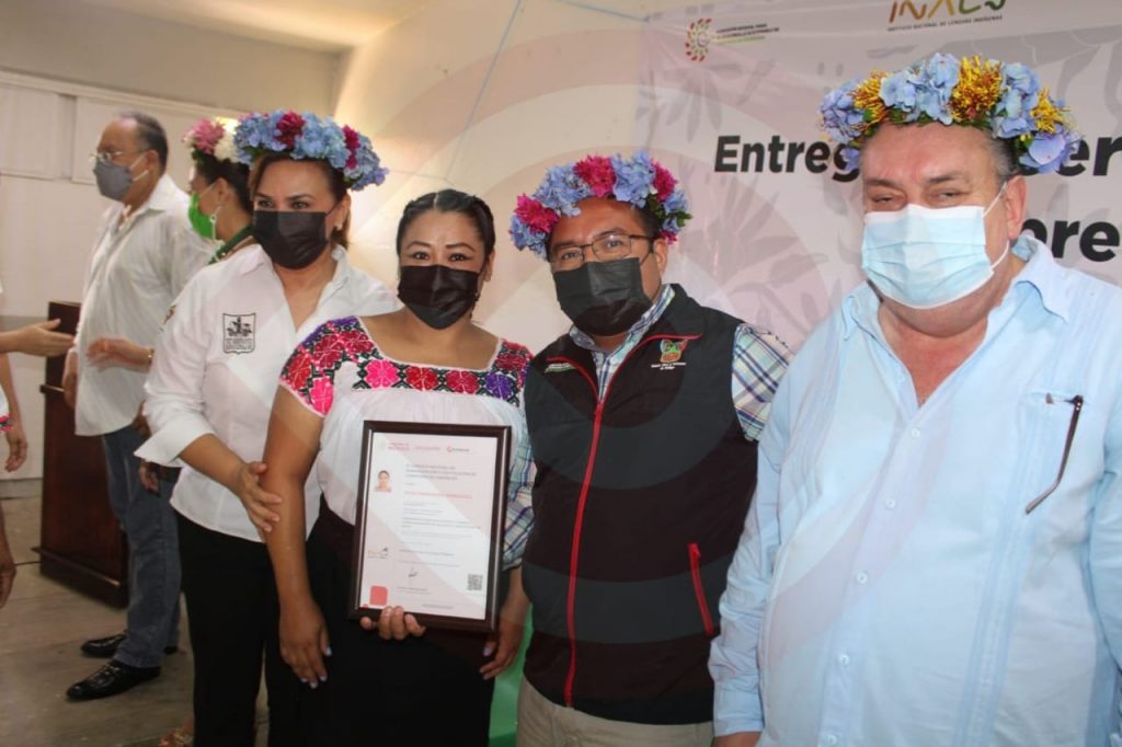 Por su parte, César Herrera Lara, de la Comisión Estatal para el Desarrollo Sostenible de los Pueblos Indígenas (CEDSPI), agradeció a los presentes y felicitó a quienes recibieron el certificado; señaló, que no fue fácil lograr el objetivo, pero gracias al esfuerzo de todos fue posible y que a través de diferentes programas y acciones, Omar Fayad, Gobernador del Estado, ha exteriorizado que para su administración es prioridad el desarrollo de los pueblos indígenas, por ello, a través de este organismo trabaja para fortalecer y avivar las lenguas maternas.