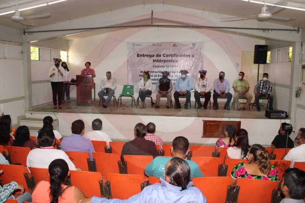 Laura Mendoza Ordoñez, encargada del departamento de Certificación y Asignación a Intérpretes, dio la exposición de motivos, en la cual señaló que la Comisión Estatal para el Desarrollo Sostenible de los Pueblos Indígenas, a través del Centro Evaluador CEDSPI Hidalgo y las presidencias municipales de la región huasteca, coordinaron esfuerzos para que las y los servidores públicos de sus ayuntamientos participaran en el proceso de selección de candidatos, los cuales deberían de tener como mínimo el 85% del dominio materno (Náhuatl); cabe señalar que mediante la firma de convenios, los municipios incluyentes hicieron el compromiso de certificar a intérpretes de la lengua indígena.