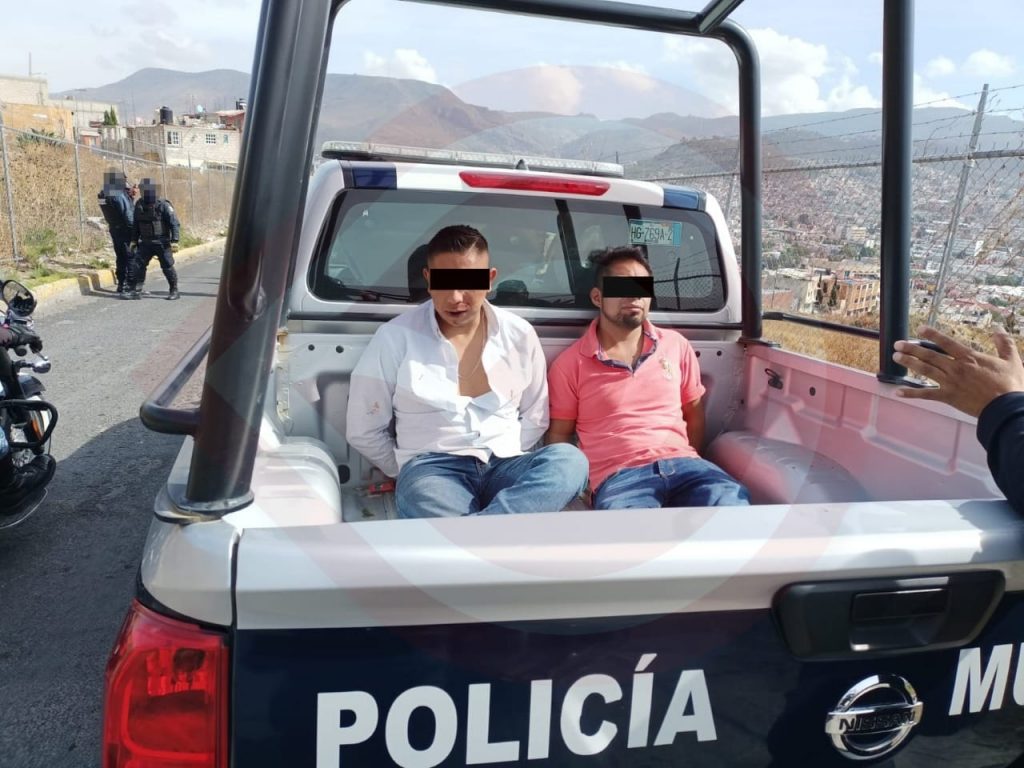 A través de la Sección Motopatrullas, la Policía Estatal aseguró a quienes se identificaron como A.W.M.H., de 30 años, y M.V.M., de 31, señalados por su presunta relación en el robo de pertenencias y dinero en efectivo a un taxista en la colonia La Raza de Pachuca.