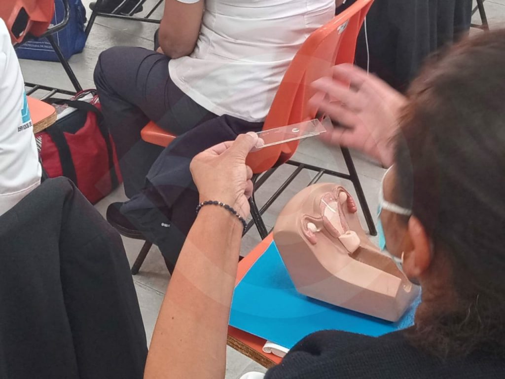 En este ejercicio de aprendizaje y compromiso por mantenerse actualizados, el personal médico y de enfermería abordaron temáticas como: Citología cervical y de mama: toma, extendido y fijación de la muestra, causas que originan muestras inadecuadas en citología cervical y de mama, interpretación de resultado y manejo del paciente y revisión de muestras inadecuadas.