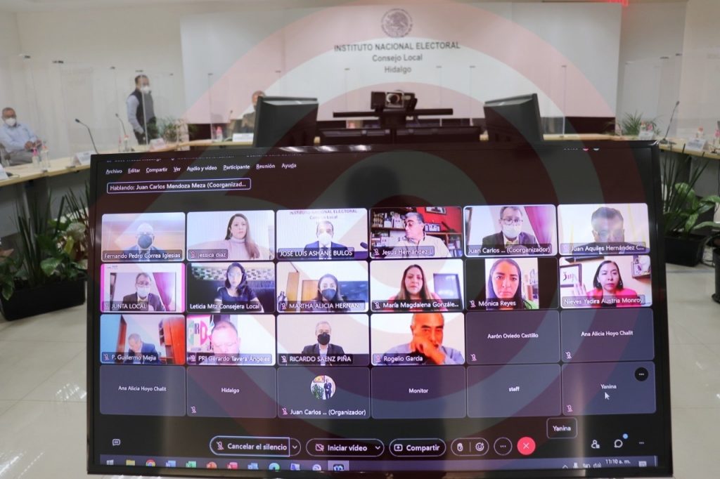 Estuvieron presentes en modalidad hibrida las y los consejeros electorales Lic. Fernando Pedro Correa Iglesias, Lic. Jesús Hernández Lechuga, Lic. Juan Aquiles Hernández Chávez, Lic. Leticia Martínez Santos, Mtra. Martha Alicia Hernández Hernández y Lic. Nieves Yadira Austria Monroy; así como del Vocal Secretario del Consejo Local Mtro. Juan Calos Mendoza Meza, Lic. Ana Alicia Hoyo Chalit, Vocal de Registro Federal de Electores, Mtra. María Magdalena González Escalona, Vocal de Capacitación Electoral y Educación Cívica y Lic. Ricardo Saénz Piña, Vocal de Organización Electoral.