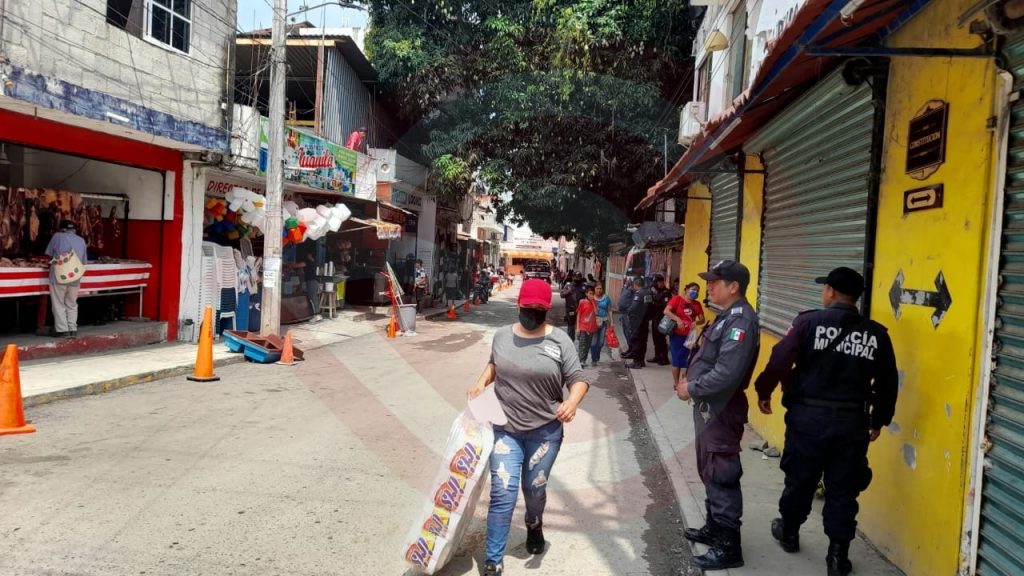 Huejutla, Hgo. – Con el propósito de evitar que sigan los cotidianos congestionamientos vehiculares en una cuadra de la calle Constitución, de la colonia Santa Irene, este viernes la Policía Municipal desplegó un operativo de vigilancia.