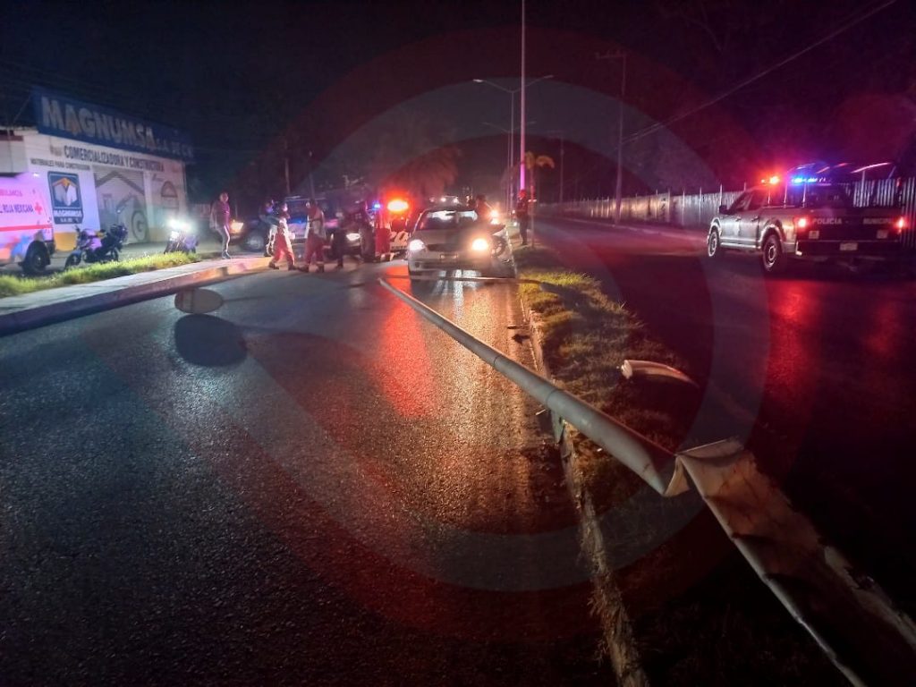 Huejutla, Hgo. – El conductor de un vehículo particular logró darse a la fuga tras haberse impactado contra una lámpara de alumbrado público del camellón central, por lo que corporaciones policíacas acudieron al lugar.