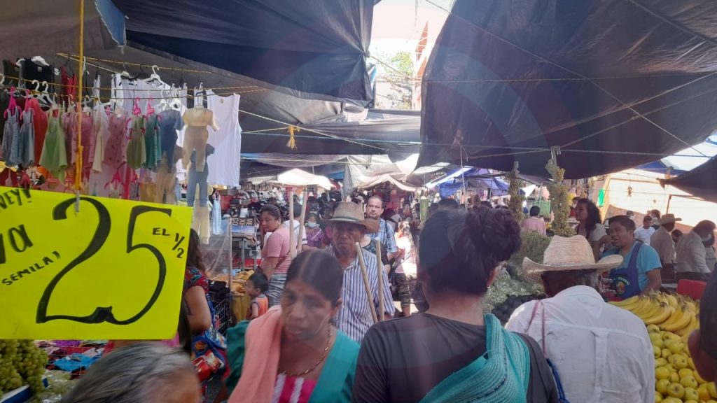 Lo anterior, se comprobó la mañana de este día en el tianguis, que no obstante, las recomendaciones de la Secretaría de Salud debe de haber un aforo del 70 %, máximo, estaba abarrotado, como en tiempos normales.
