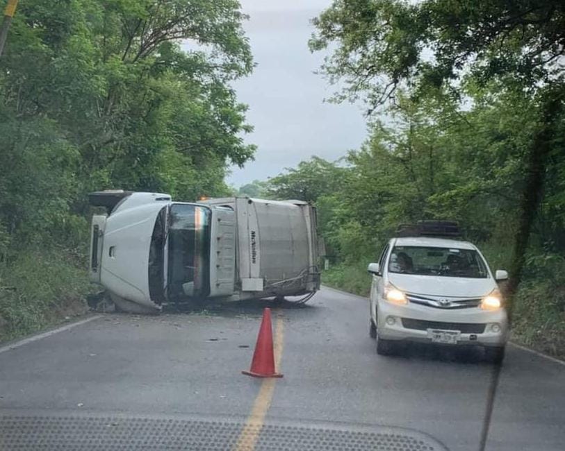Vuelca camión recolector de Huejutla