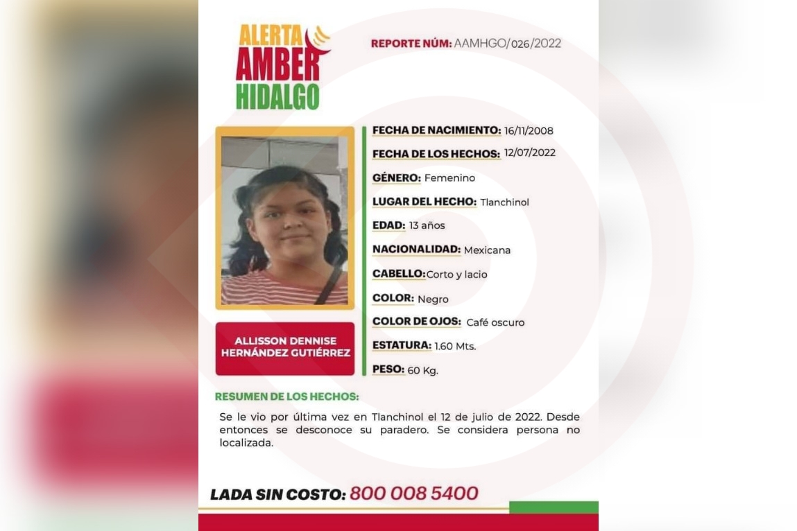 Por Redacción/Zunoticia Huejutla, Hgo. – La Procuraduría General de Justicia del Estado de Hidalgo (PGJEH) inició una carpeta de investigación por la desaparición de una adolescente de 13 años de edad, originaria del municipio de Tlanchinol. La menor Allisson Dennise Hernández Gutiérrez, fue vista por última vez en Tlanchinol el pasado martes 12 de julio… Seguir leyendo Desaparece adolescente