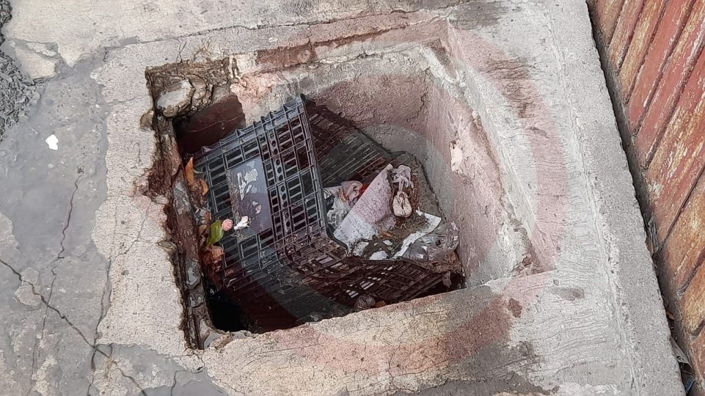 Huejutla, Hgo. – Habitantes de la población, expresaron que, en diferentes calles de colonias, hay sobre las banquetas tapaderas de drenajes colapsadas, lo cual es un peligro latente para los transeúntes, en especial para personas de la tercera edad y niños.