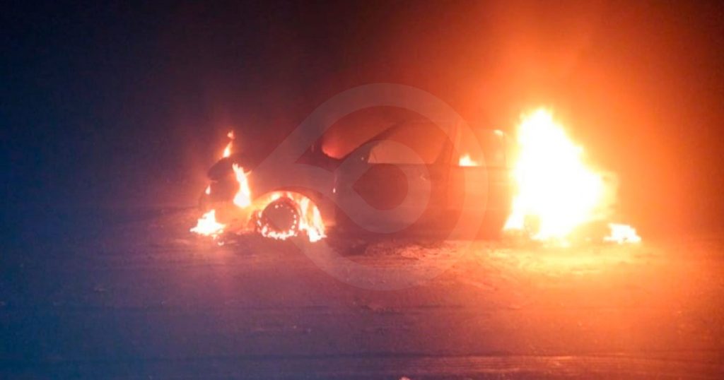 San Felipe Orizatlán, Hgo.- Fue sobre la carretera federal 102 Tamazunchale- Álamo, en el tramo comprendido entre el Motel Rapid Inn y el Basurero de San Felipe, que a orilla de la rúa se reportó un auto de alquiler, de color verde, de Tamazunchale, S.L.P.; el cual, estaba siendo consumido por el fuego.