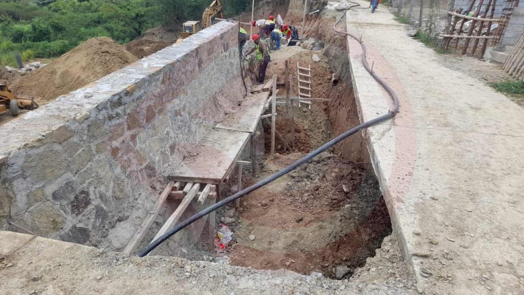 Agregaron que, donde se acentuó el derrumbe, a la vera del camino había un muro de contención relativamente endeble, por lo que ahora están cimentando uno grueso y macizo, por consiguiente, de gran durabilidad.