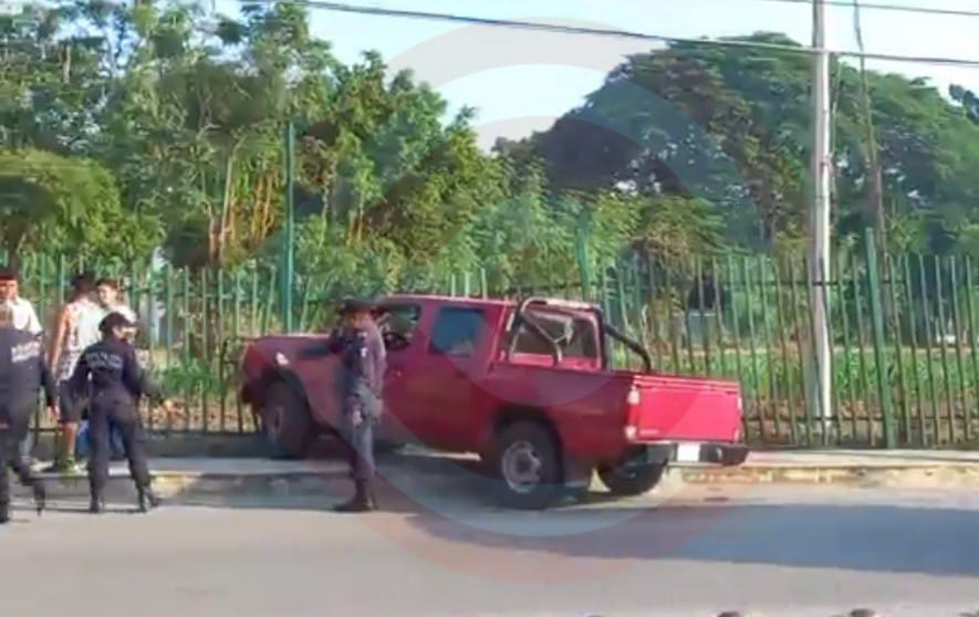 Huejutla, Hgo.- Fuerte accidente sufrió el conductor de una camioneta particular, quien presuntamente circulaba bajo los efectos del alcohol, el cual terminó impactado contra el barandal de una escuela preparatoria.