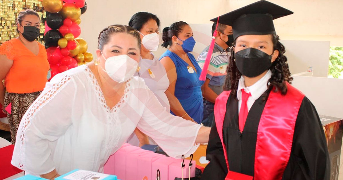 San Felipe Orizatlán, Hgo. – Erika Saab Lara, asistió como madrina de generación a la ceremonia de graduación de la escuela primaria “José Ángeles Montaño”, quién ha refrendado su compromiso desde el primer día de su gobierno con la educación.